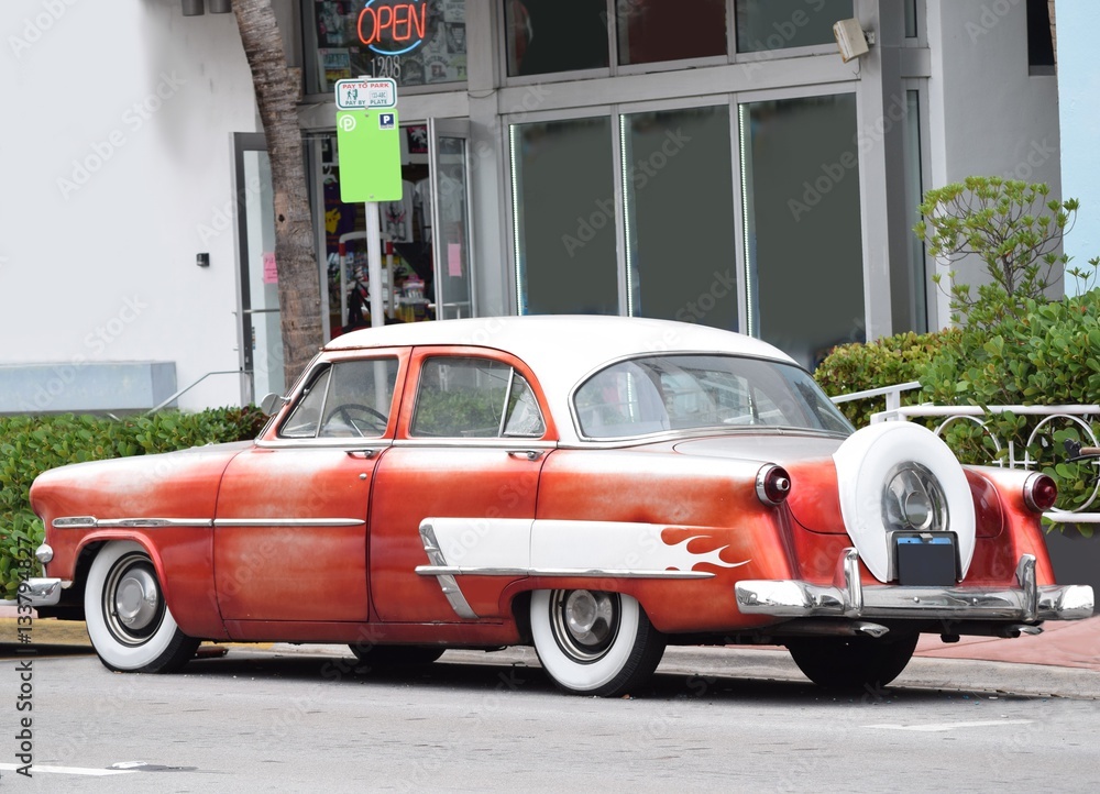Ein Oldtimer Aus Den Usa Ford Overdrive In Seitlicher Frontansicht Fahrerseite Gesehen In Miami Florida Stock Photo Adobe Stock